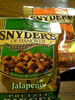 スナイダースのプレッツェルを砕いたのが詰まったシリーズ。