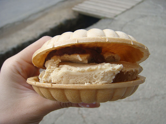 同じ店で買った蕎麦アイスのモナカは、じょりっとした食感が蕎麦?
