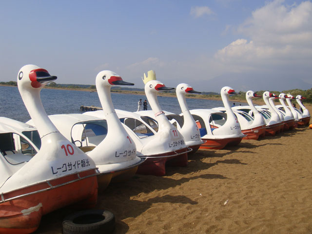 風が強過ぎて、足こぎボートが凄い揺れまくりな光景を見、