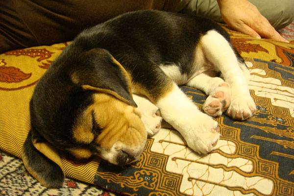 寝る、水を飲む、トイレ、寝る、ご飯食べる、ちょっと遊ぶ、寝る、トイレ…ひたすらシンプルな生活を送ってらっしゃるわんこ様。