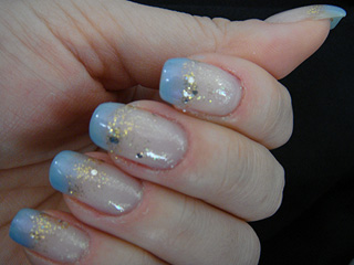 青の箇所はグラデーションにしたのですが、境に金のラメを塗ったら目立たなくなってみましたorz
