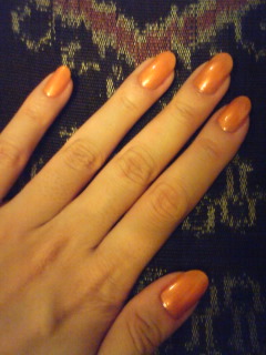 オレンジってなかなか似合わないと苦手意識があったのですが、半端無い位にビビッドで発色もパキッと良い山吹色みたいな色ですと、案外肌に馴染んで、私の肌にはどの時間でもしっくりくる気がします。