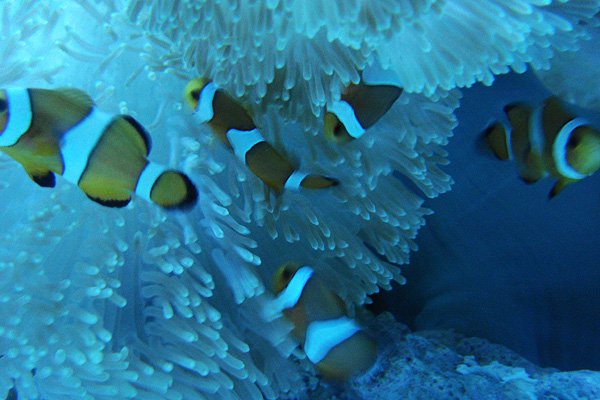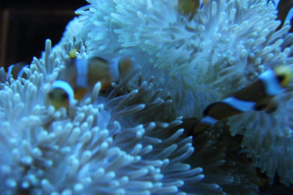 他にも青いのとか色々居たんですが、餌っぽいものを投入されるとざざっと居なくなってしまったり、なかなか写真に撮れませんでした。投入されるのはクマノミの餌ではないらしく、クマノミはマイペースに同じ場所でたむろってました(笑)